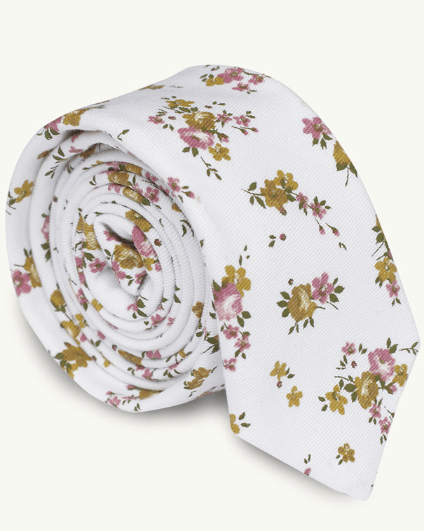 It's the little touches that truly elevate an outfit. The Zia Skinny Tie is a testament to this: a ditzy floral print in muted hues of pink and gold adds that strip of sharpness to your favorite suit or sports coat. Just be prepared for a shower of compliments.