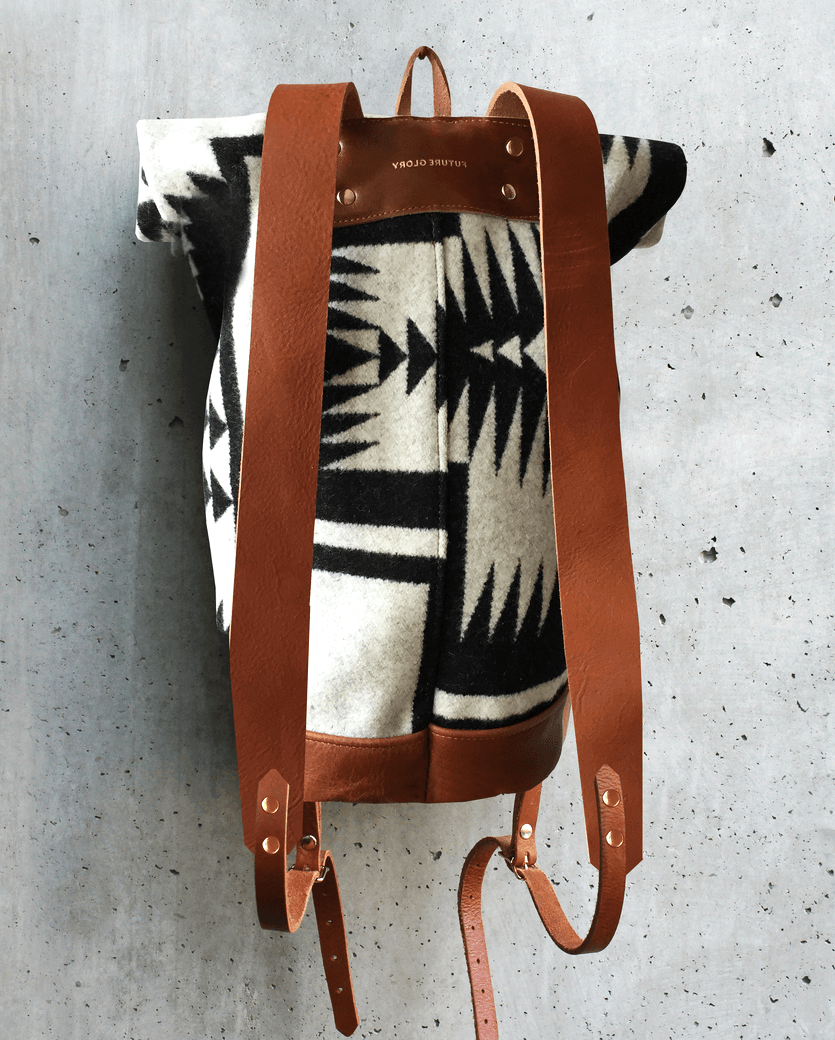 Stand out from the crowd with Future Glory's limited edition Walking Rock Rolltop Backpack made from blanket weight Pendleton wool, leather and cotton twill. Keep your load versatile by easily adjusting the Rolltop with the brass buckle closure, and relax - your shoulders will be looked after by padded vegetable-tanned straps. Like all of their wares, it's handcrafted in Future Glory's San Francisco studio.