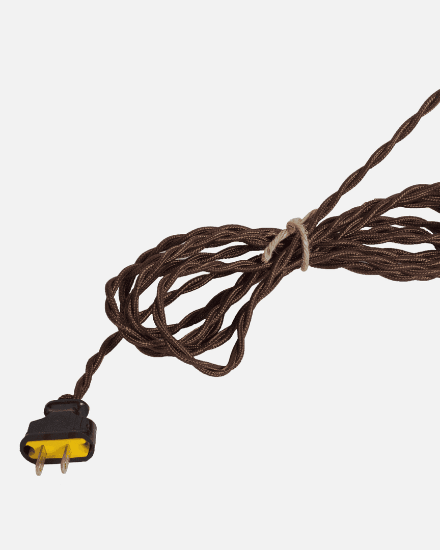 - Fabrication: Hand finished ebonized brass patina, hand waxed clear protective finish, antique style brown Bakelite plug, cloth covered twisted cord. All UL Listed components